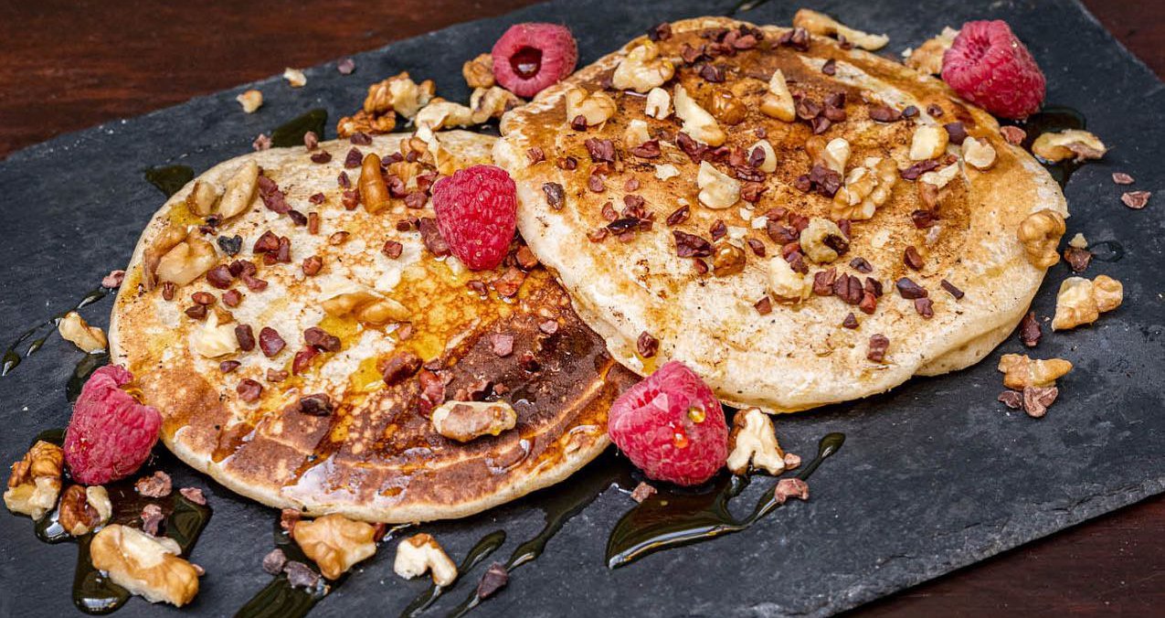 Φτιαγμένες από αγνά και φρέσκα υλικά, σερβίρονται με βατόμουρα, κόκκους κακάο, καρύδια και σιρόπι σφενδάμου είναι αυτές οι τηγανίτες θα γαργαλίσουν με τον πιο γευστικό τρόπο τον ουρανίσκο σου.