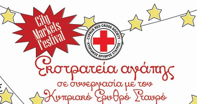 Στο πλαίσιο του φεστιβάλ, εθελοντές του Κυπριακού Ερυθρού Σταυρού θα συλλέγουν είδη πρώτης ανάγκης για τους συνανθρώπους μας που τα έχουν ανάγκη. Ο Ερυθρός Σταυρός έχει σοβαρές ελλείψεις στα πιο κάτω είδη, γι’ αυτό και έκκληση μας είναι να φέρει ο καθένας ότι μπορεί για να βοηθήσουμε το έργο του: Παιδικό γάλα, παιδικές τροφές, παιδικές πάνες, μπισκότα, γάλα διαρκείας, σαπούνι, υγρό πιάτων, σαμπουάν, απορρυπαντικό ρούχων. Στις 30 Νοεμβρίου γύρω στις 12.00, η Πρόεδρος του Κυπριακού Ερυθρού Σταυρού, κα. Φωτεινή Παπαδοπούλου θα τους τιμήσει με την παρουσία της. Μέρος των εσόδων από τη διοργάνωση του City Markets θα διατεθεί για το Πολυδύναμο Κέντρο του Δήμου Στροβόλου. Για το σκοπό αυτό ο Δήμαρχος Στροβόλου Δρ. Λάζαρος Σαββίδης θα επισκεφθεί το φεστιβάλ για να παραλάβει το ποσό από τους διοργανωτές του City Markets. Κατά τη διάρκεια του διήμερου φεστιβάλ, θα λειτουργήσουν περίπτερα με χειροποίητες δημιουργίες, βιβλία σε πολύ χαμηλές τιμές, είδη ζαχαροπλαστικής και διάφορα άλλα μοναδικά προϊόντα που μπορεί να γίνουν τα καλύτερα χριστουγεννιάτικα δώρα για εσάς και τους αγαπημένους σας, στηρίζοντας παράλληλα την τοπική αγορά. Στο φεστιβάλ θα φιλοξενηθεί σχολή φωνητικών, μαθητές της οποίας θα τραγουδήσουν για όλους εμάς. Επίσης, θα υπάρχει δωρεάν ζωγραφική προσώπου και κλόουν για τους μικρούς φίλους. Το City Markets είναι ένα φεστιβάλ αγοράς μοναδικών αντικειμένων και προϊόντων που συνδυάζει και την ψυχαγωγία διατηρώντας τον φιλανθρωπικό του χαρακτήρα. Πραγματοποιήσαμε ήδη με επιτυχία άλλα δύο φεστιβάλ. Στο πρώτο φεστιβάλ που πραγματοποιήθηκε στο Πάρκο Ακροπόλεως τον περασμένο Σεπτέμβριο, μέρος των εσόδων διατέθηκαν για το Πολυδύναμο Κέντρο του Δήμου Στροβόλου. Στο δεύτερο φεστιβάλ που πραγματοποιήθηκε τον περασμένο Οκτώβριο στο Wherehaus612 στην Παλλουριώτισσα, μέρος των εσόδων διατέθηκε για το Πολυδύναμο Κέντρο του Δήμου Λευκωσίας.