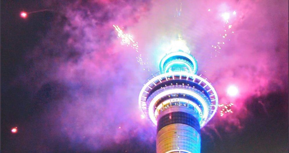 Παρά τα περιοριστικά μέτρα λόγω κορονοϊού, χιλιάδες άνθρωποι βρέθηκαν στην Victoria St West, στο κέντρο της πρωτεύουσας του Οκλαντ, για να γιορτάσουν την έλευση της νέας χρονιάς και να θαυμάσουν το σόου με λέιζερ και πυροτεχνήματα που είχε στηθεί στον περίφημο πύργο Sky Tower, ύψους 328 μέτρων.