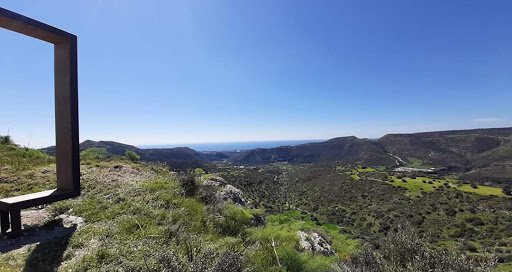 Αυτό που προκαλεί περισσότερη εντύπωση στο σημείο αυτό, πέραν του μαγευτικού σημείου θέας, είναι και το παγκάκι «κορνίζα», αλλιώς παράθυρο.