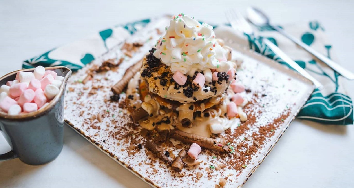 Οι καφετέριες «COFFEESWEET», στη Λάρνακα και στην Αραδίππου, παρουσίασαν μια «λαχταριστή» φωτογραφία με pancake, το οποίο είναι γεμάτο από μπισκότα, σοκολατένια πουράκια, μέχρι λευκή σοκολάτα, σαντιγί και marshmallows.