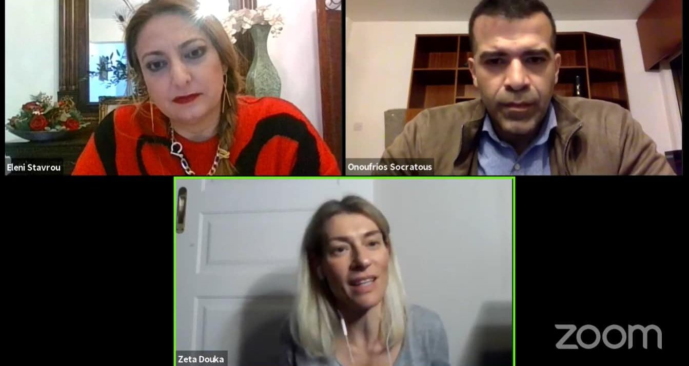 Το μήνυμα ότι η λεκτική και ψυχολογική βία είναι μια ιδιαίτερα ύπουλη μορφή βίας, που αφήνει ανεξίτηλα σημάδια στις ψυχές των θυμάτων, για αυτό και πρέπει να πονικοποιηθεί, έστειλε η καταξιωμένη ηθοποιός Ζέτα Δούκα, η οποία συμμετείχε σε διαδικτυακή συζήτηση με τίτλο «Σταθερά μαζί, μπορούμε να βάλουμε όλοι ένα τέλος», που διοργάνωσε η βουλευτής του ΔΗΣΥ Λεμεσού, Δρ Ελένη Σταύρου.