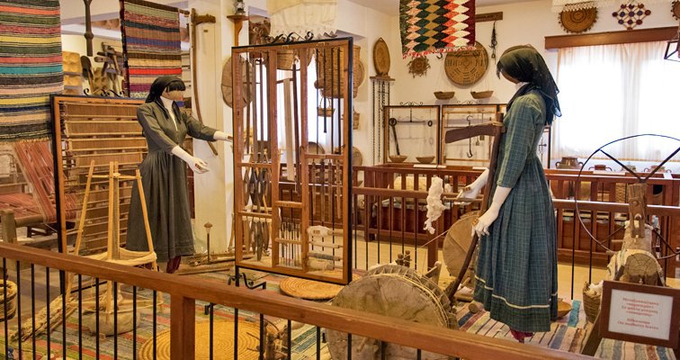 Τα εκθέματά του περιλαμβάνουν σκηνές από την ύφανση στον αργαλειό και το όργωμα και παρουσιάζονται εργαλεία και εξοπλισμός, είδη χειροτεχνίας, μαγειρικά σκεύη, αγγεία, βάζα και παραδοσιακές ενδυμασίες.