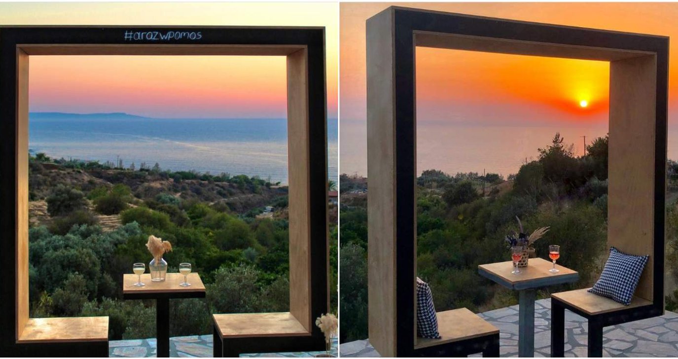 Στην περιοχή Περβόλι λοιπόν, στον Πωμό, θα δεις ένα μαγευτικό και συνάμα εντυπωσιακό σημείο θέας, όπου έχει τοποθετηθεί ένα παγκάκι, σαν ένα παράθυρο, όπου μπορείς να φωτογραφηθείς με φόντο την εξαιρετική θέα. Χαρακτηριστική είναι η επιγραφή του, #arazwpomos