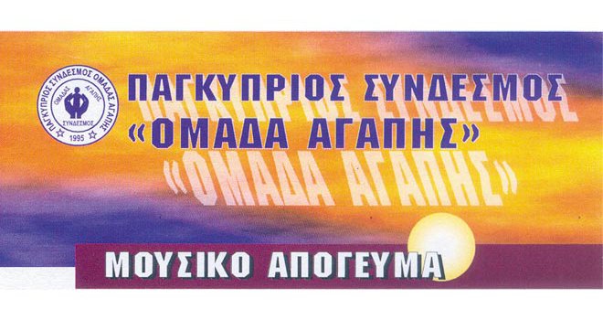 Ο Παγκύπριος Σύνδεσμος "Ομάδα Αγάπης" διοργανώνει "Μουσικό Απόγευμα" με τον Μάριο Μελετίου και τους συνεργάτες του. Στόχος τους είναι η ενίσχυση του ταμείου του συνδέσμου έτσι ώστε να μπορέσουν να βοηθήσουν τα παιδιά που βρίσκονται υπό την αιγίδα του, Κυπριόπουλα που ζουν κάτω από το όριο της φτώχειας.