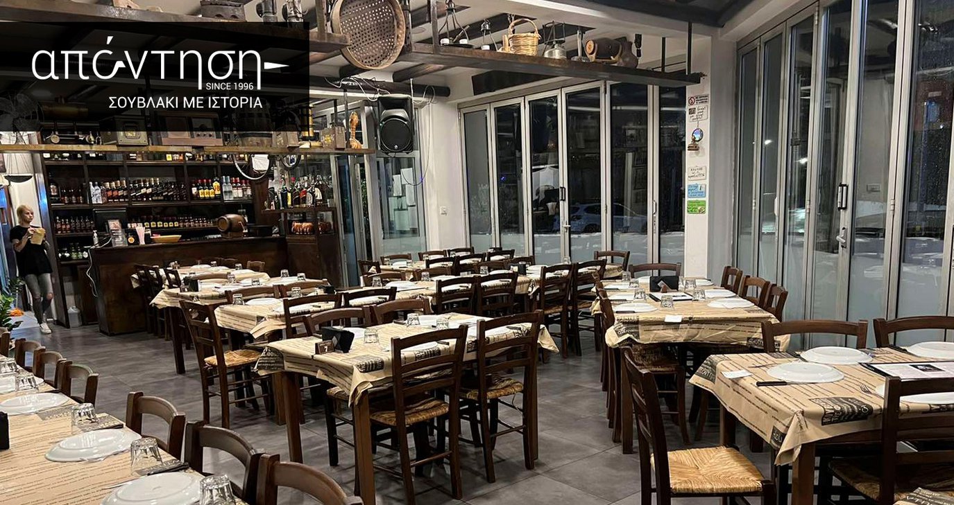 Από το 1996 που άνοιξε η ταβέρνα Απάντηση, καθιερώθηκε στο κοινό για το ποιοτικό ζουμερό της σουβλάκι. Με την προσθήκη της υπηρεσίας delivery, η ζήτηση αυξήθηκε μέσα από τα χρόνια και ανάγκασε τον ιδιοκτήτη Δημήτρη Δημητρίου να σκεφτεί διαφορετικά και να ψάξει καινοτόμες ιδέες για να ανταπεξέλθει. Η απάντηση; 12 μέτρα φουκού (!) με αυτοματοποιημένο σύστημα ψησίματος. Το θέαμα είναι όντως εντυπωσιακό και το αποτέλεσμα αξιοθαύμαστο, αφού όποια μέρα και αν παραγγείλεις σουβλάκια, το ψήσιμό τους είναι κατά 95% ακριβώς το ίδιο!