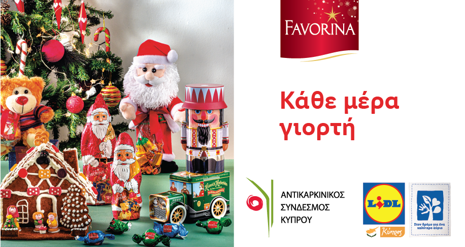 Η Lidl Κύπρου στέκεται μπροστά στην αλληλεγγύη και παρακινεί τους καταναλωτές της να συνεισφέρει μέσα από τις αγορές τους, στους συνανθρώπους μας. Η Favorina είναι ένα brand σχεδόν συνώνυμο με τα γιορτινά τραπέζια, αφού προσφέρει μια μεγάλη ποικιλία εορταστικών επιλογών, που δίνουν χαρά σε μικρούς και μεγάλους!