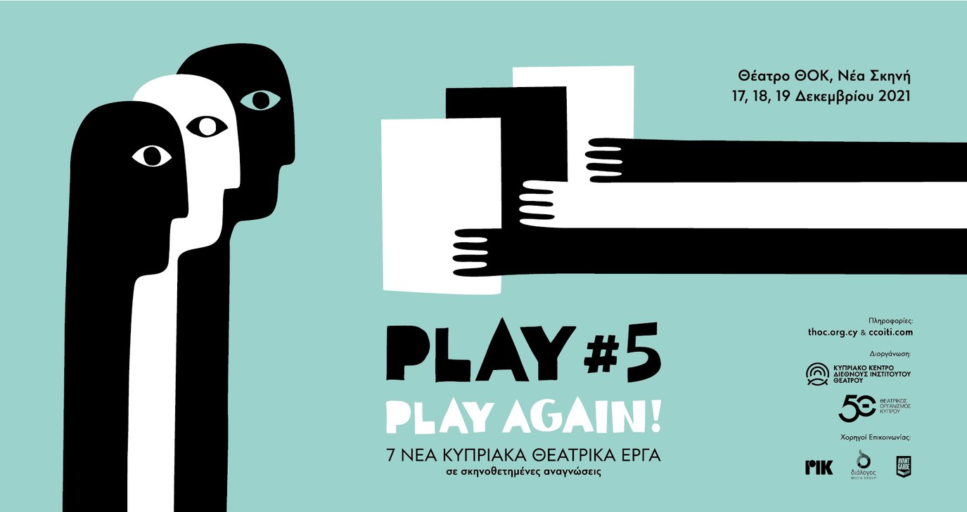 To Κυπριακό Κέντρο Διεθνούς Ινστιτούτου Θεάτρου (ΚΚΔΙΘ) και ο Θεατρικός Οργανισμός Κύπρου (ΘΟΚ) παρουσιάζουν τα επτά νέα θεατρικά έργα που προέκυψαν μέσα από τη διαδικασία του Προγράμματος PLAY#5 – PLAY again!, σε σκηνοθετημένες αναγνώσεις, το τριήμερο 17, 18 και 19 Δεκεμβρίου 2021 στη Νέα Σκηνή του Θεάτρου ΘΟΚ.