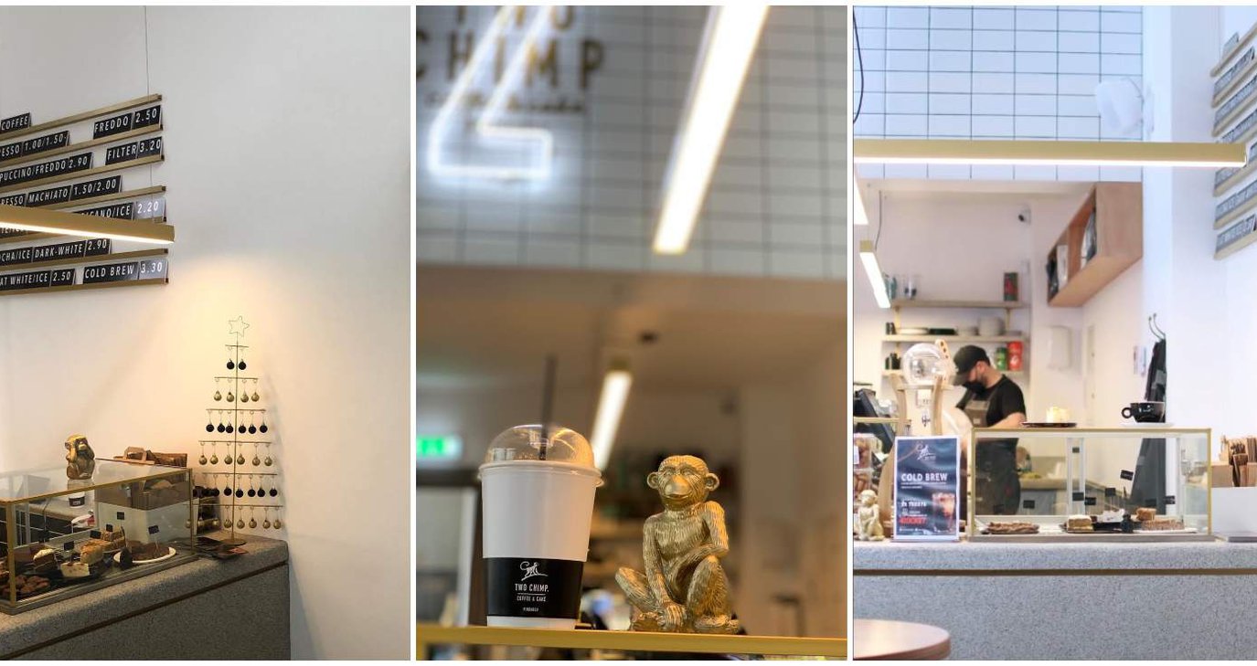 Πρόκειται για το Twochimp Coffee & Cake που έκανε την εμφάνισή του στην πολυσύχναστη οδό Πινδάρου και το οποίο ξεχωρίζει χάρη στην καθαρή, μίνιμαλ αισθητική του.