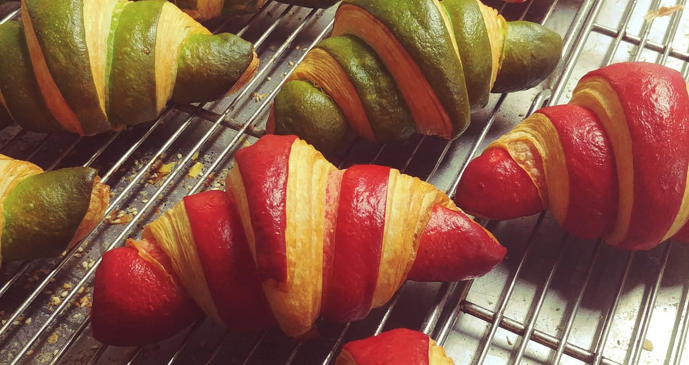 Αυτά τα ιδιαίτερα, πολύχρωμα κρουασανάκια θα τα βρεις ζεστά στη βιτρίνα του artisan bakery σε τέσσερις ακαταμάχητες γεύσεις: με πλούσιο μασκαρπόνε και raspeberry, με πιστάτσιο, με πραλίνα φουντουκιού και με μαύρη σοκολάτα!