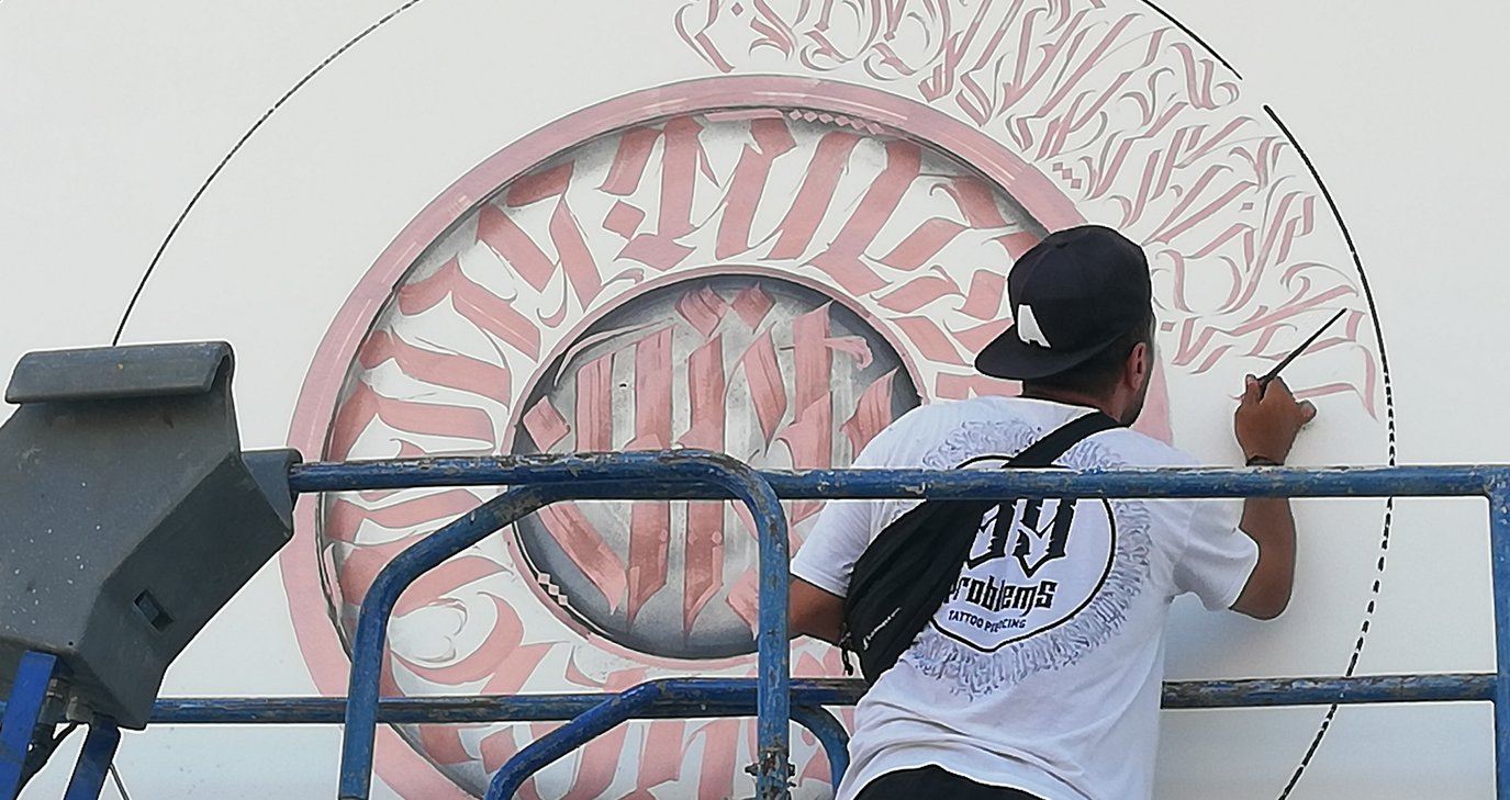 Ο δημιουργός της τοιχογραφίας, Ανατόλιο Σπυρλίδης, έλαβε Πτυχίο Art Design and Technology στο Πανεπιστήμιο του Derby στο Ηνωμένο Βασίλειο. Ασχολείται με την τέχνη της τοιχογραφίας για περισσότερα από δεκαπέντε χρόνια και με την καλλιγραφία τα τελευταία πέντε χρόνια. Συμμετείχε σε τοπικές και διεθνείς δράσεις, επιδεικνύοντας ένα ιδιαίτερα πλούσιο και καταξιωμένο πορτφόλιο (instagram: royalvenom). Το 2019 συμμετείχε στο ‘International Graffiti Mural Event Meeting of Styles’ στην Πριστίνα (Κόσοβο), και ως καλλιτέχνης καλλιγραφίας/ καλλιγκράφιτι συνεργάστηκε με τα ελληνικά streetwear brand KushComa και Vertigo Athens.