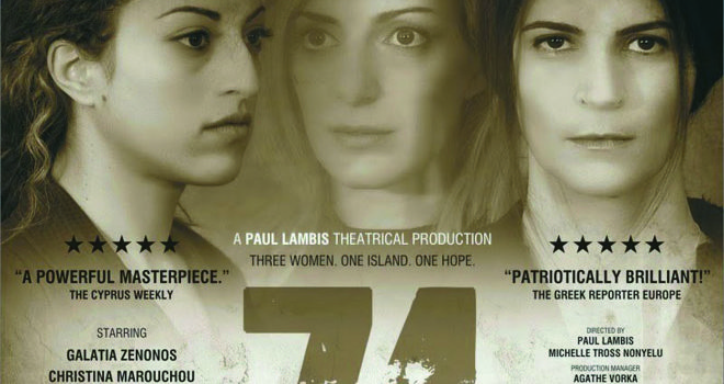 Η θεατρική παράσταση "74" είναι ένα αγωνιώδες δράμα που επικεντρώνεται στις ζωές 3 γυναικών και τις τραυματικές τους εμπειρίες από την Τουρκική Εισβολή στην Κύπρο. Το πολεμικό δράμα Paul Lambis είναι μία ιστορία αγάπης, απώλειας, ζωής και θανάτου δοσμένο μέσα από τα μάτια 3 γυναικών και τον τρόπο με τον οποίο αυτές οι ιστορίες ενώνονται και καταλήγουν στον ίδιο πόθο και την ελπίδα για την επανένωση του νησιού. Η κάθε γυναίκα συμβολίζει και μια πόλη που βρίσκεται υπό κατοχή, συγκεκριμένα την Κερύνεια, τη Μόρφου και τα Βαρώσια. Τους κύριους γυναικείους ρόλους ερμηνεύουν η Γαλάτεια Ζήνωνος στο ρόλο της Κερύνειας, η Νέδη Αντωνιάδη στο ρόλο της Μόρφου και η Χριστίνα Μαρουχού στο ρόλο της Βαρώσιας. Επιπλέον, ο Κρίστοφερ Γκρέκο θα παίξει το ρόλο του Αρχιεπισκόπου Μακαρίου, ο Ανδρέας Παπαμιχαλόπουλος το ρόλο του Κύπριου στρατιώτη, ενώ ο Paul Lambis θα παίξει τον ρόλο του Τούρκου στρατιώτη. Αφηγητής θα είναι ο Χρίστος Γρηγοριάδης.