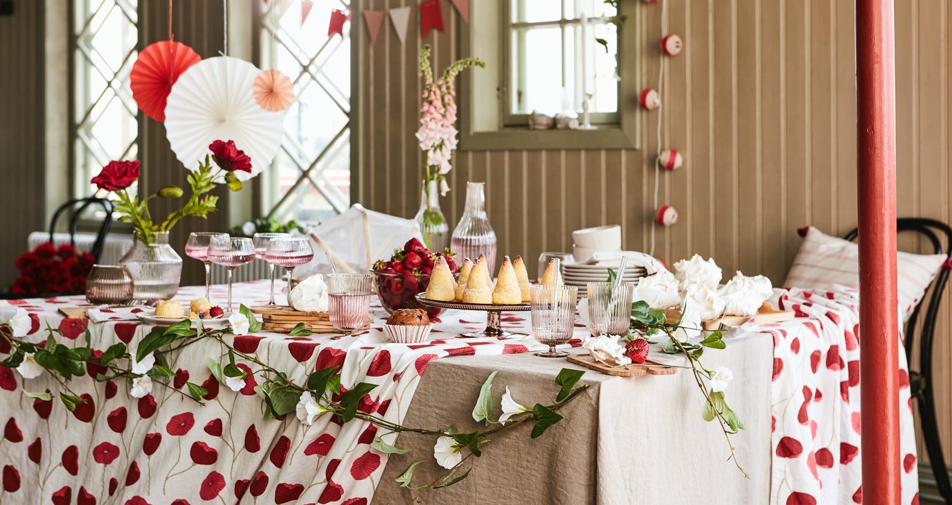 Η σειρά περιλαμβάνει και είδη διακόσμησης, όπως γιρλάντες από τεχνητά λουλούδια και διακοσμητικά από χαρτί σε λευκό και κόκκινο, για να κάνετε κάθε περίσταση μοναδική για εσάς και τους καλεσμένους σας.