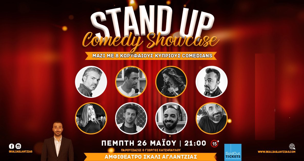 Την Πέμπτη 26 Μαΐου στο Αμφιθέατρο Σκαλί Αγλαντζιάς, 8 κορυφαίοι Κύπριοι Comedians και ένας Ελλαδίτης παρουσιαστής συγκεντρώνουν τις δυνάμεις τους και υπόσχονται άφθονο γέλιο, διασκέδαση και μια αξέχαστη βραδιά!