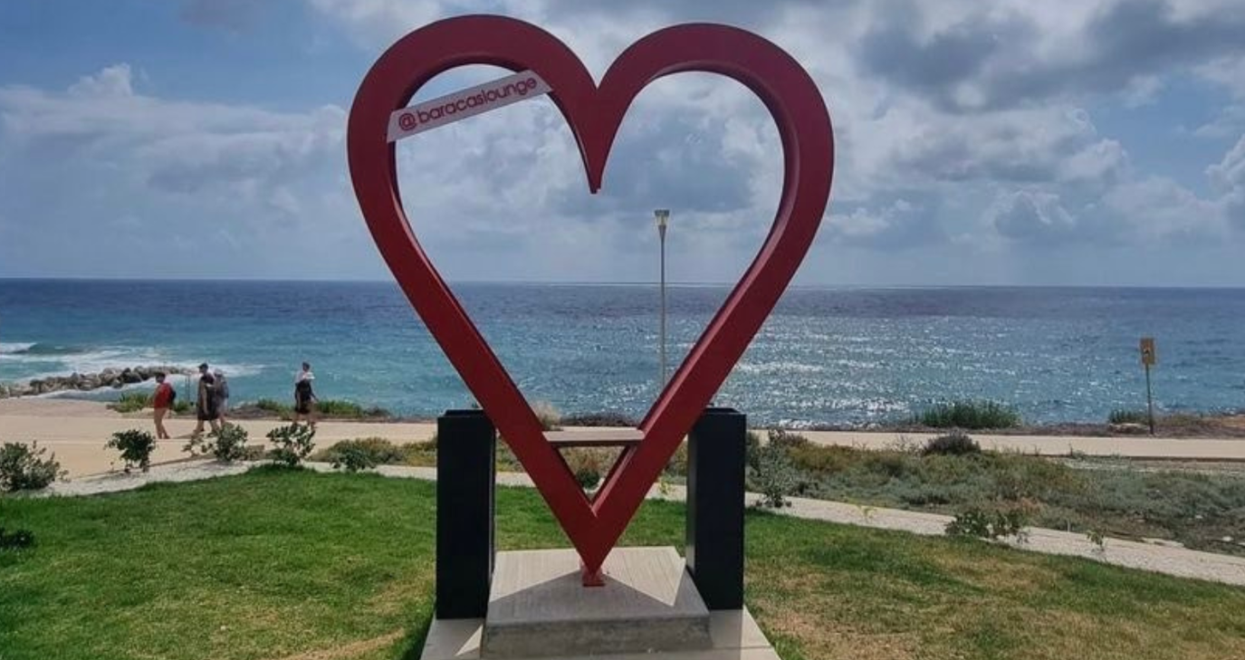 Όποιος πάντως κι αν είναι ο λόγος που θα φτάσεις εκεί, η τεράστια, κόκκινη καρδιά, πίσω από την οποία εμφανίζεται η θάλασσα και το πανέμορφο ηλιοβασίλεμα, θα σου ομορφαίνουν την εικόνα πιο πολύ.