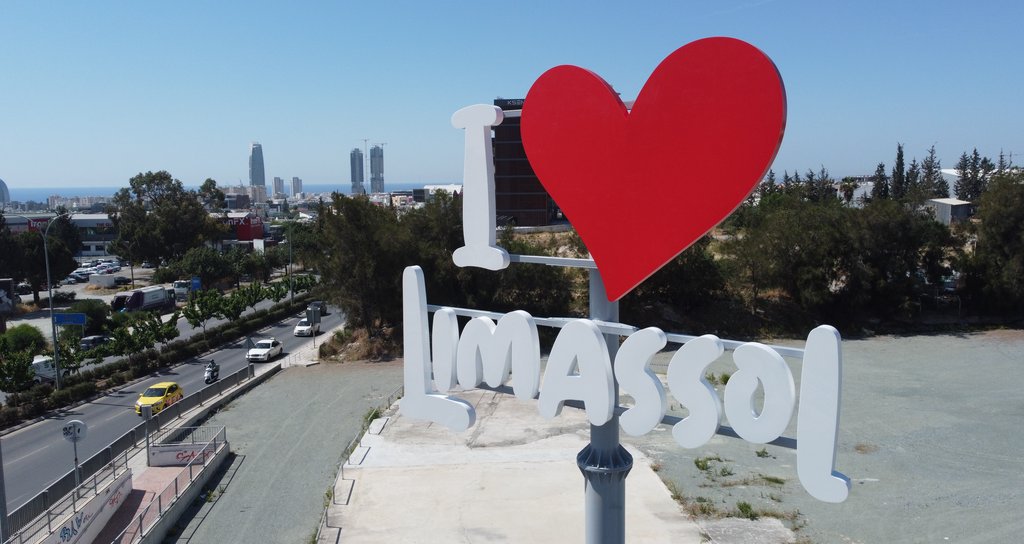 Συγκεκριμένα τη μια θα την συναντήσεις στον κυκλικό κόμβο του Αγ. Αθανασίου, η οποία φέρει την επιγραφή «I ❤️ Limassol».