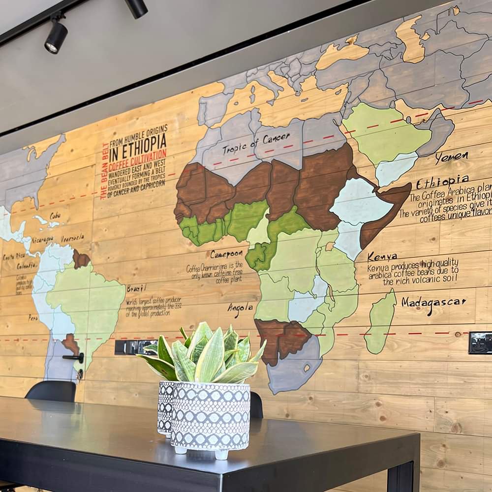 Το νέο μαγαζί είναι ένας γήινος χώρος, όπου κυριαρχεί το ξύλο και το πράσινο, ιδανικός για να χαλαρώσει κάποιος, απολαμβάνοντας καφέ, φτιαγμένο από τους άριστα εκπαιδευμένους barista, φρέσκους χυμούς και φρεσκοψημένα εδέσματα.