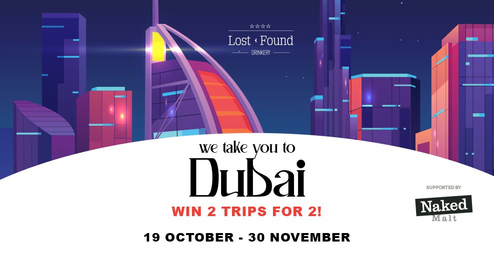 Για ακόμη μια φορά, το Lost + Found Drinkery πρωτοτυπεί και ταξιδεύει τέσσερις τυχερούς στο πιο πολυτελές εμιράτο, το Dubai, με ένα καινούριο μενού / διαβατήριο εμπνευσμένο από το Naked Malt και τις φθινοπωρινές του νότες.