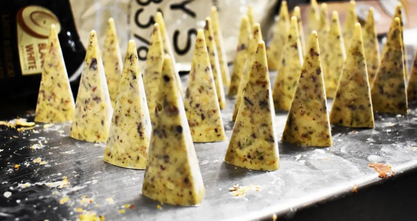 Ivoire valrhona 35% λευκή σοκολάτα, με καβουρδισμένα φυστίκια Αιγίνης