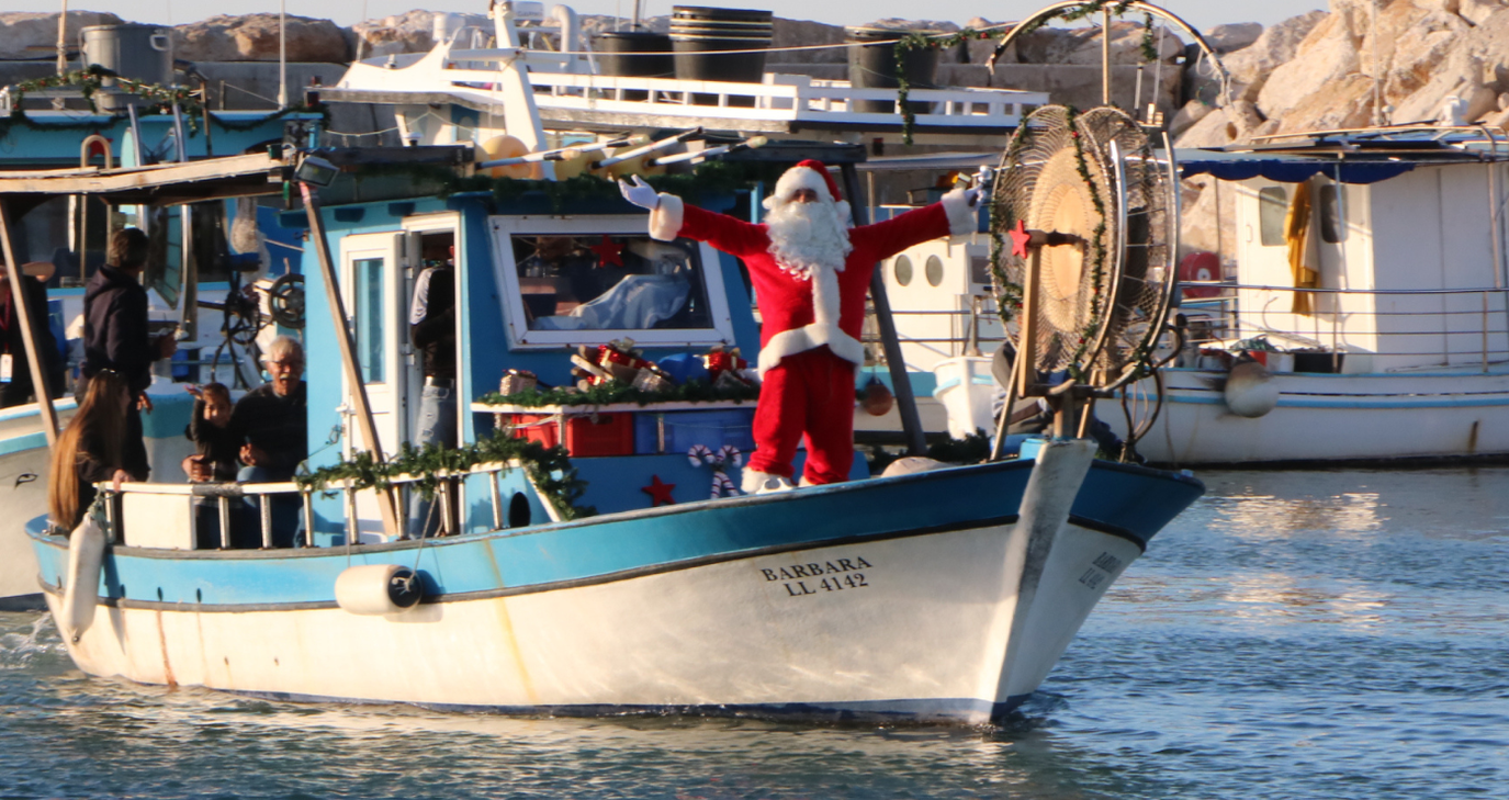 Πλήθος κόσμου από όλες τις Πόλεις υποδέχτηκε τον Άγιο Βασίλη που κατέφθασε θεαματικά συνοδευόμενος από ψαρόβαρκες, speed boats και jet ski και αγκυροβόλησε στο λιμανάκι Λατσιού το Σάββατο 26.11.2022 στις 15.30 το απόγευμα.