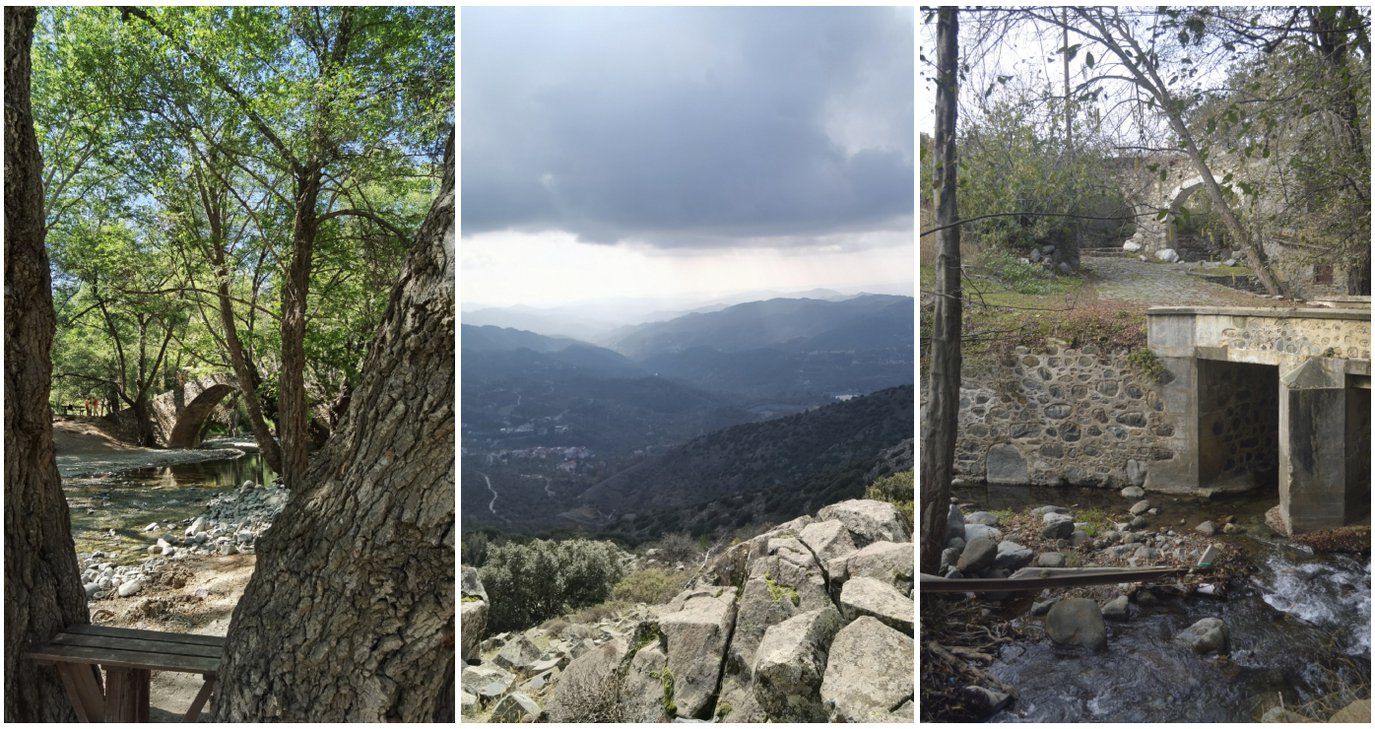 Στο χωριό Γαλάτα, της επαρχίας Λευκωσίας, αν εντοπίσεις και ακολουθήσεις το κατηφορικό δρομάκι, θα καταλήξεις σε… έναν άλλον κόσμο. Ο νερόμυλος αποτε λείται από δύο αψίδες, με το ποτάμι να τρέχει από κάτω, και δίπλα υπάρχει ένα παγκάκι όπου οι επισκέπτες μπορούν να απολαύσουν το τοπίο. Υπάρχει επίσης ένα μονοπάτι που, αν ακολουθήσεις, περπατάς πλάι στον ποταμό σε μια γρα φική διαδρομή μέχρι την εκκλησία της Παναγίας Ποδίθου.