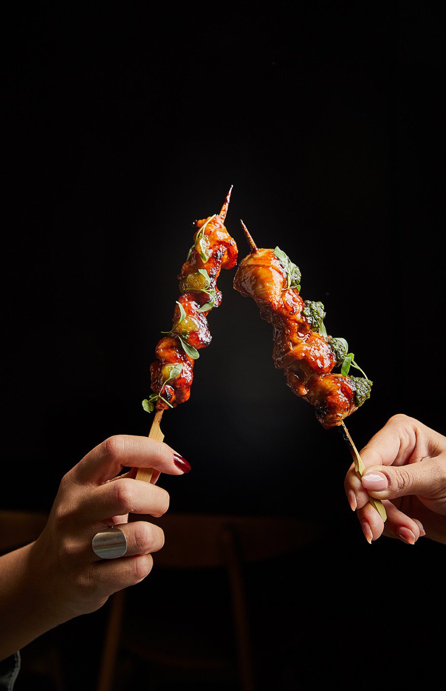 Σίγουρα είμαστε επηρεασμένοι από την ιαπωνική κουλτούρα γεύσεων, και πιο συγκεκριμένα από τα Yakitori-Ya (δηλαδή µικρούς χώρους όπου µπορείς να απολαύσεις ξεχωριστά εδέσµατα όπως διάφορα cuts κοτόπουλου σε µορφή σουβλάκι, ψημένα σε ξυλάνθρακα και seasoned µε µια σάλτσα), αλλά και από Ιαπωνικές pubs (izakaya) όπου σερβίρονται διάφορα είδη σνακ για να συνοδεύσεις το ποτό σου. Ωστόσο στο Ukiyo Listening Βar, τα πιάτα µας έχουν τον δικό τους χαρακτήρα, τη δική µας, ας το πούµε, τσαχπινιά - την τσαχπινια του σεφ µας Νίκου Πολιτάκου.