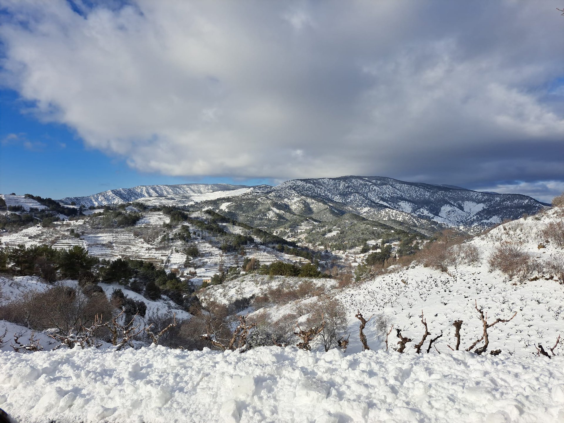 Οι χαμηλές θερμοκρασίες των τελευταίων ημερών έχει ως αποτέλεσμα να ντυθούν στα λευκά όχι μόνο οι ψηλές κορυφές του Τροόδους αλλά και τα χωριά σε χαμηλότερο υψόμετρο.