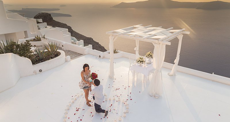 Ηλιοβασίλεμα που κόβει την ανάσα! Στην τρίτη θέση συναντάμε την Σαντορίνη! Δεν θα μπορούσε αυτό το νησί της Ελλάδας να λείπει από την κατάταξή μας. Ένας από τους πιο ρομαντικούς προορισμούς με ανθρώπους να επισκέπτονται το νησί από κάθε γωνιά της γης για την ιδιαίτερη ομορφιά του. Μπορείτε να δοκιμάσετε τη νόστιμη τοπική κουζίνα, να επισκεφτείτε τα σπίτια που είναι χτισμένα σε βράχους, να χαθείτε στα γραφικά σοκάκια του. Απολαύστε κατά την απογευματινή ώρα ένα cocktail σε ένα από τα πιο διάσημα μπαρ του νησιού υπό τον ήχο της κλασικής μουσικής. Η ώρα που πέφτει ο ήλιος πλησιάζει! Τι καλύτερο λοιπόν από το να κάνετε τη πιο σημαντική πρόταση της ζωής σας σε μια απόμερη παραλία ή σε ένα από τα μπαλκόνια του νησιού κατά τη διάρκεια του ηλιοβασιλέματος;
