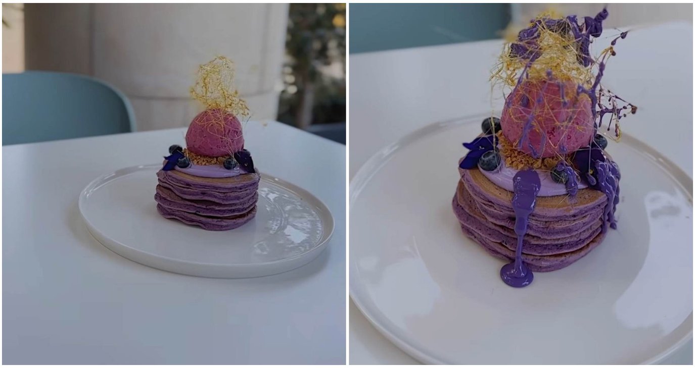Φτιαγμένα από ube (ένα γλυκό από τις Φιλιππίνες, από πουρέ λιλά γλυκοπατάτας) με παγωτό φρούτων του δάσους και φωλιά καραμέλας, είναι σίγουρα ένα πιάτο που θα ξεχωρίσει στην έξοδό σου για brunch το σαββατοκύριακο.