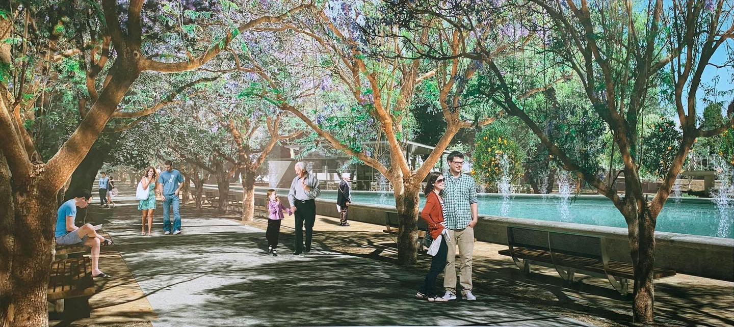 -βελτίωση και προβολή του χώρου με εμπλουτισμό της υφιστάμενης φύτευσης, με κατάλληλη τοπιοτέχνηση και με την ένταξη σύγχρονων στοιχείων που να συνάδουν με το χώρο