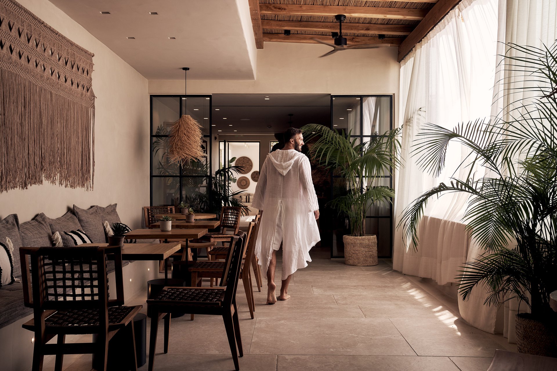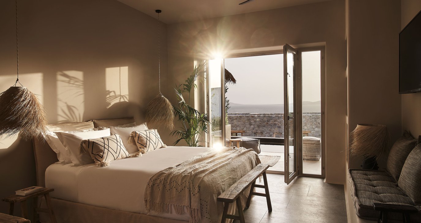 Διαθέτοντας εσωτερικούς χώρους σε γήινες αποχρώσεις, πέτρινους τοίχους, χειροποίητα ξύλινα έπιπλα και διακόσμηση από φυσικά υλικά, το ξενοδοχείο τιμά την κυκλαδίτικη παράδοση και το φυσικό περιβάλλον της περιοχής. Προσφέροντας, μεταξύ άλλων, πολυτελείς σουίτες με ιδιωτικό μπαλκόνι και θέα στον κήπο, αλλά και σουίτες με ιδιωτική πισίνα, υδρομασάζ και πανοραμική θέα στη θάλασσα, το ξενοδοχείο επιτρέπει στους επισκέπτες να ζήσουν την απόλυτη εμπειρία hide-away απόλαυσης.