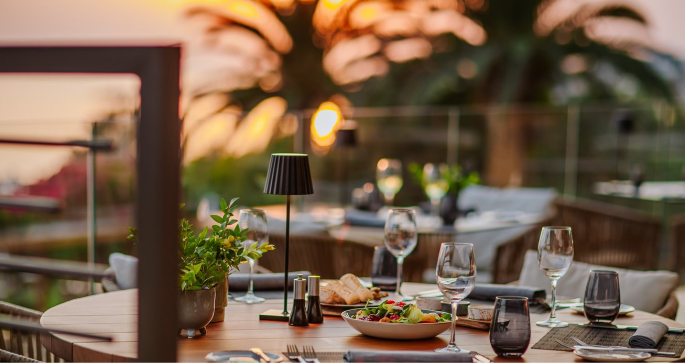 Την ώρα που τα χρώματα του ουρανού γίνονται πιο βαθιά και πιο ζεστά, στο μπαλκόνι του εστιατορίου The Deck στην Αγία Νάπα, οι επισκέπτες έχουν την ευκαιρία να χαθούν στη θέα, να δειπνήσουν και να πιουν το κοκτέιλ τους, με θέα το απέραντο γαλάζιο της θάλασσας.