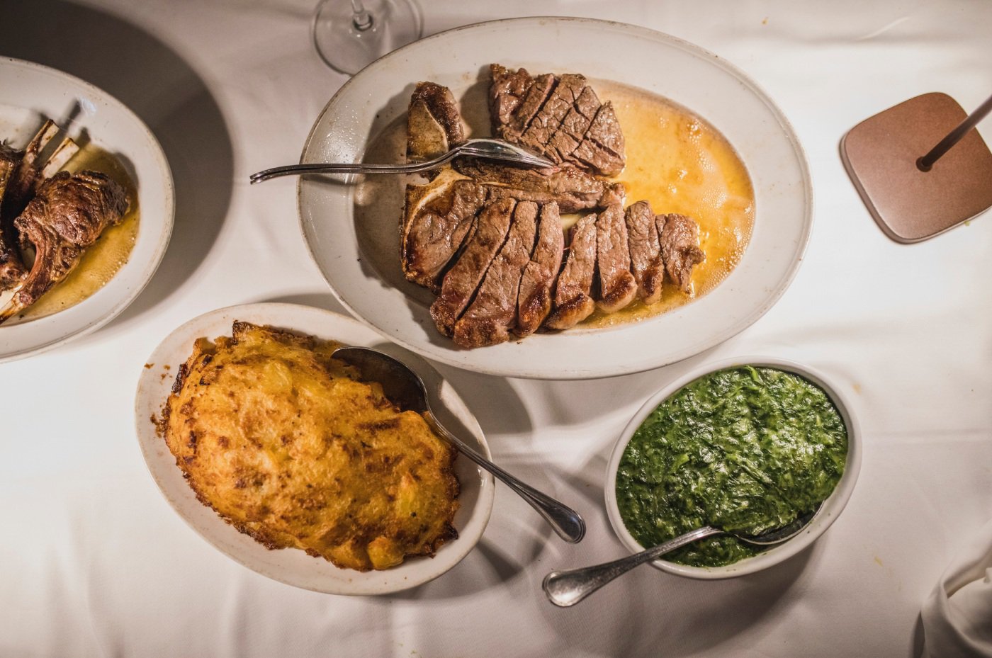 Το δείπνο απογείωσαν φυσικά οι πρωταγωνιστές της βραδιάς, το θρυλικό Tomahawk Steak και το ακαταμάχητο Porterhouse Steak, ποιότητας USDA Prime, καθώς και τα απολαυστικά αρνίσια παϊδάκια, όλα σερβιρισμένα με γερμανικές πατάτες, κρεμώδες σπανάκι, τυρί και μανιτάρια. Αν δεν υπήρχαν οι στοιχειώδεις κανόνες ευγενείας, ίσως να μην επέτρεπα στους υπόλοιπους να δοκιμάσουν από το Porterhouse Steak!