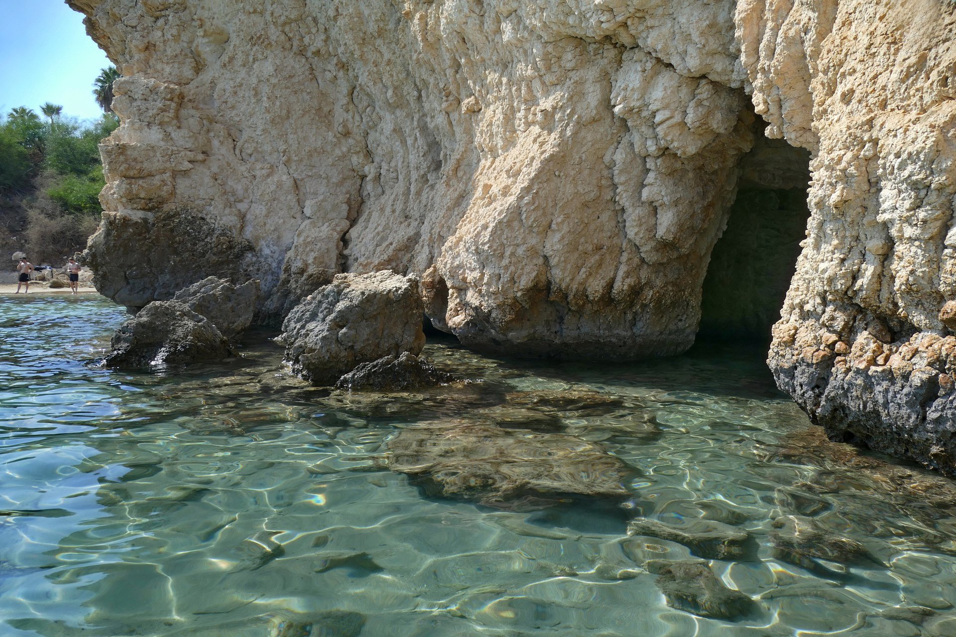 Σ' αυτήν ακριβώς την παραλία μπορείς να εξερευνήσεις τις σπηλιές. Δεν έχουν ιδιαίτερο βάθος και βρίσκονται κοντά στην παραλία, με εύκολη πρόσβαση από τα ρηχά νερά.