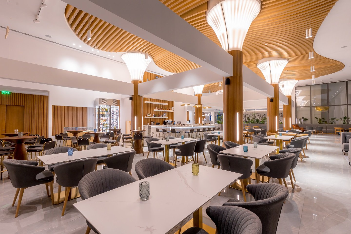 Στον εντυπωσιακό χώρο του all day Crown Restaurant οι επισκέπτες μπορούν να απολαύσουν ευφάνταστες γευστικές επιλογές καθ' όλη τη διάρκεια της ημέρας, ενώ το εποχικό Waves Bar σερβίρει πιάτα διεθνούς κουζίνας και εξαιρετικές επιλογές από ποτά και cocktails.
