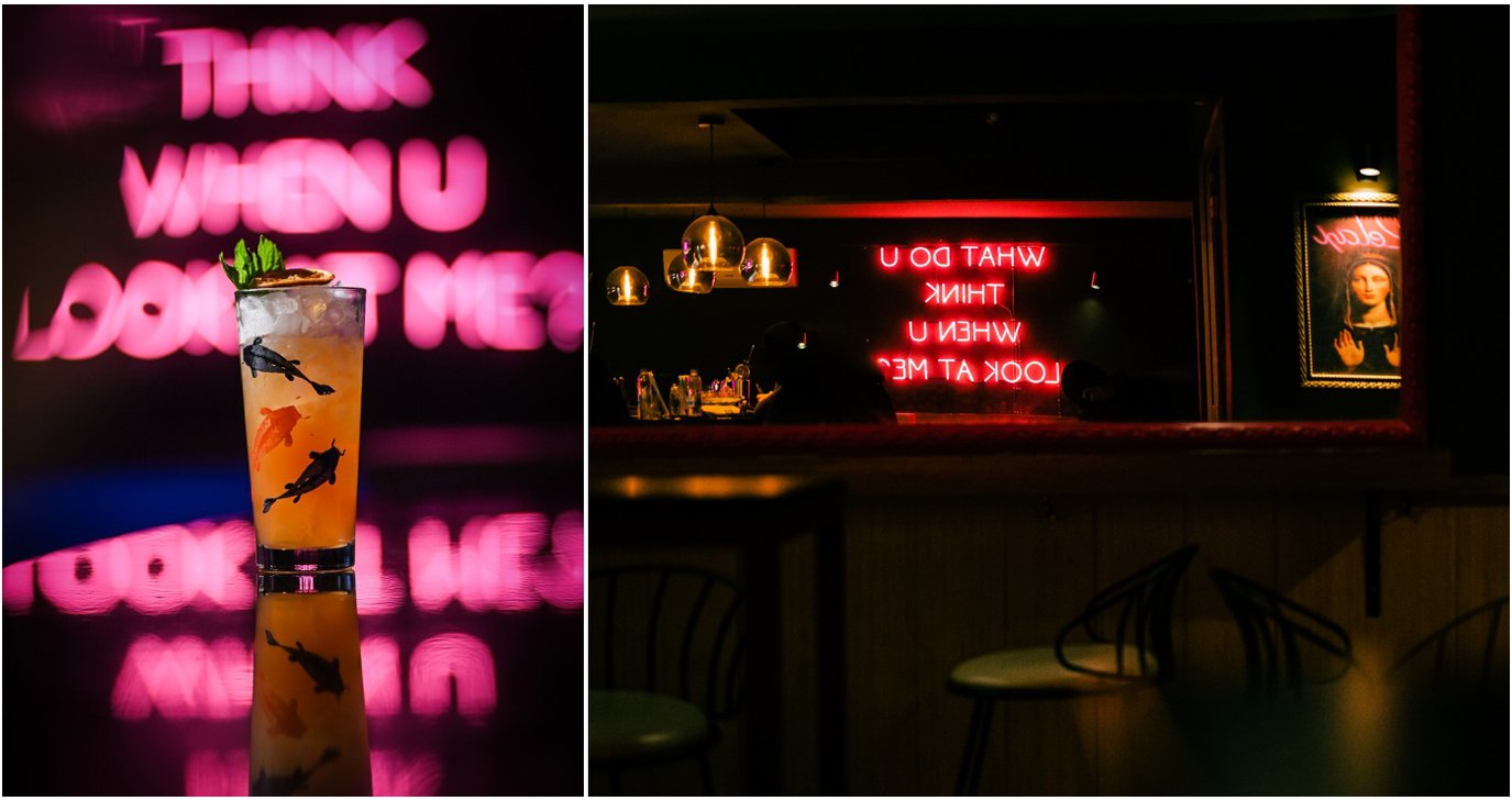 Με σήμα κατατεθέν τη ντισκομπάλα, αντιλαμβάνεσαι πάνω – κάτω τι να περιμένεις. Ένας προσεγμένος χώρος με neon και led φώτα να τον γεμίζουν με χρώμα (και, αναπόφευκτα, να σε προκαλούν να τα βγάλεις φωτογραφία), με ροζ λεπτομέρειες και ωραία ατμόσφαιρα. Αυτά στο εσωτερικό του. Μπορείς, εναλλακτικά, να καθίσεις έξω, στα ψηλά τραπεζάκια ή, αν θέλεις να χαλαρώσεις, στους αναπαυτικούς καναπέδες.