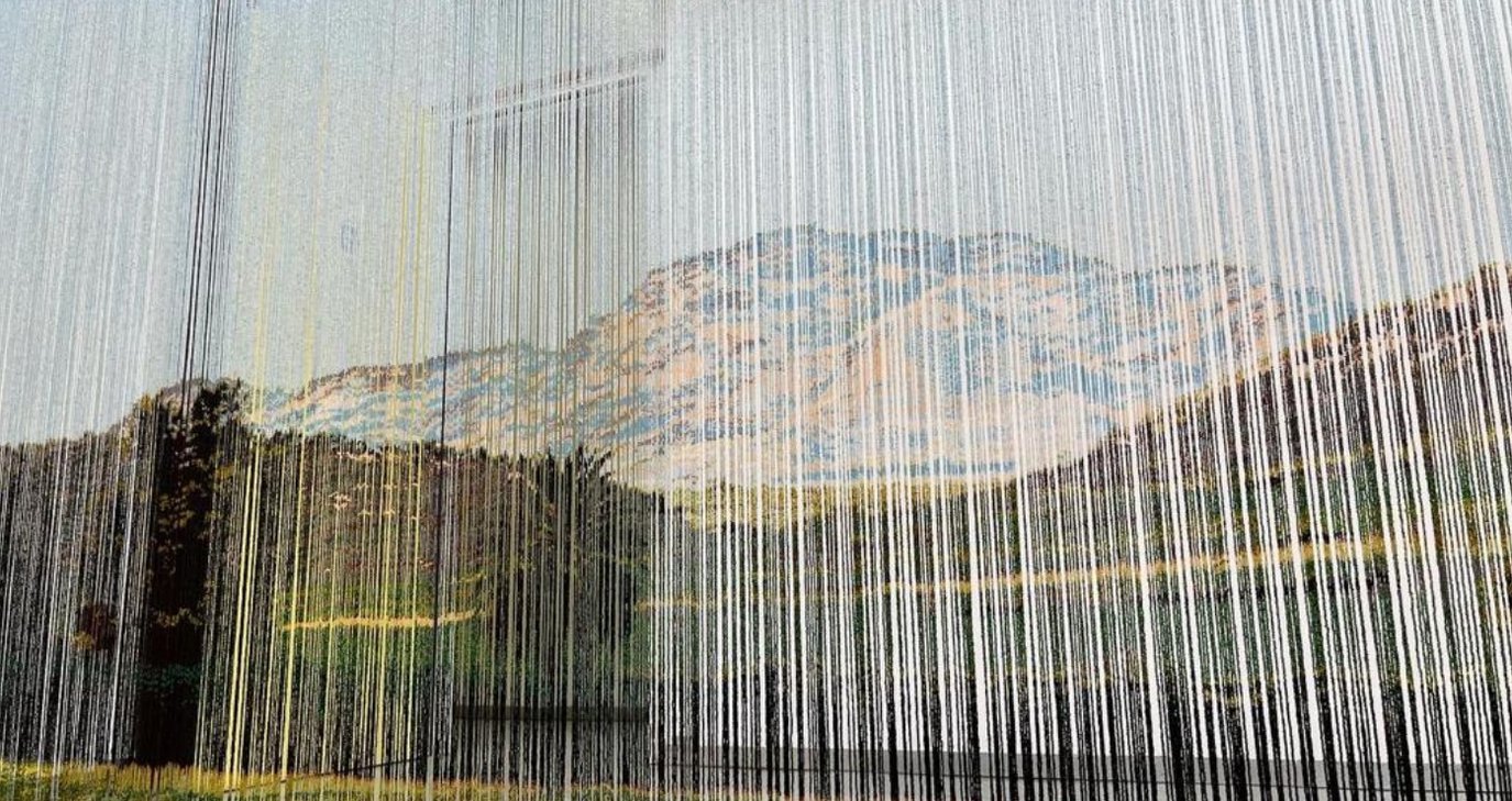 Η κουρτίνα χωρο-εικόνα υπό τον τίτλο «Αέρινα Περάσματα», 2022 (1.500.000 γυάλινες χάντρες περασμένες στο χέρι, κλωστή, σίδερο, 200 x 300 εκ.) δημιουργεί πολλαπλά ανοίγματα διέλευσης που εμφανίζονται και άλλοτε εξαφανίζονται, ανάλογα με την ερριμμένη αχτίδα φωτός και τη θέση του παρατηρητή στην τρισδιάστατη ανασύσταση του τοπίου της αρχέγονης Φύσης.