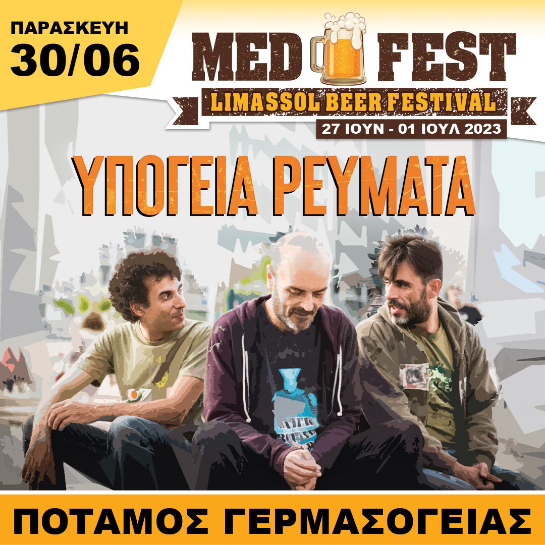 Το MEDFEST Limassol Beer Festival 2023 λοιπόν, φέρνει κοντά μας τα Υπόγεια Ρεύματα, μία θρυλική φωνή, μια Υπόγεια παρέα που καταφέρνει να ξεπερνάει συνεχώς τα μουσικά της όρια και να δημιουργεί την απόλυτη live ατμόσφαιρα σε κάθε συναυλία!