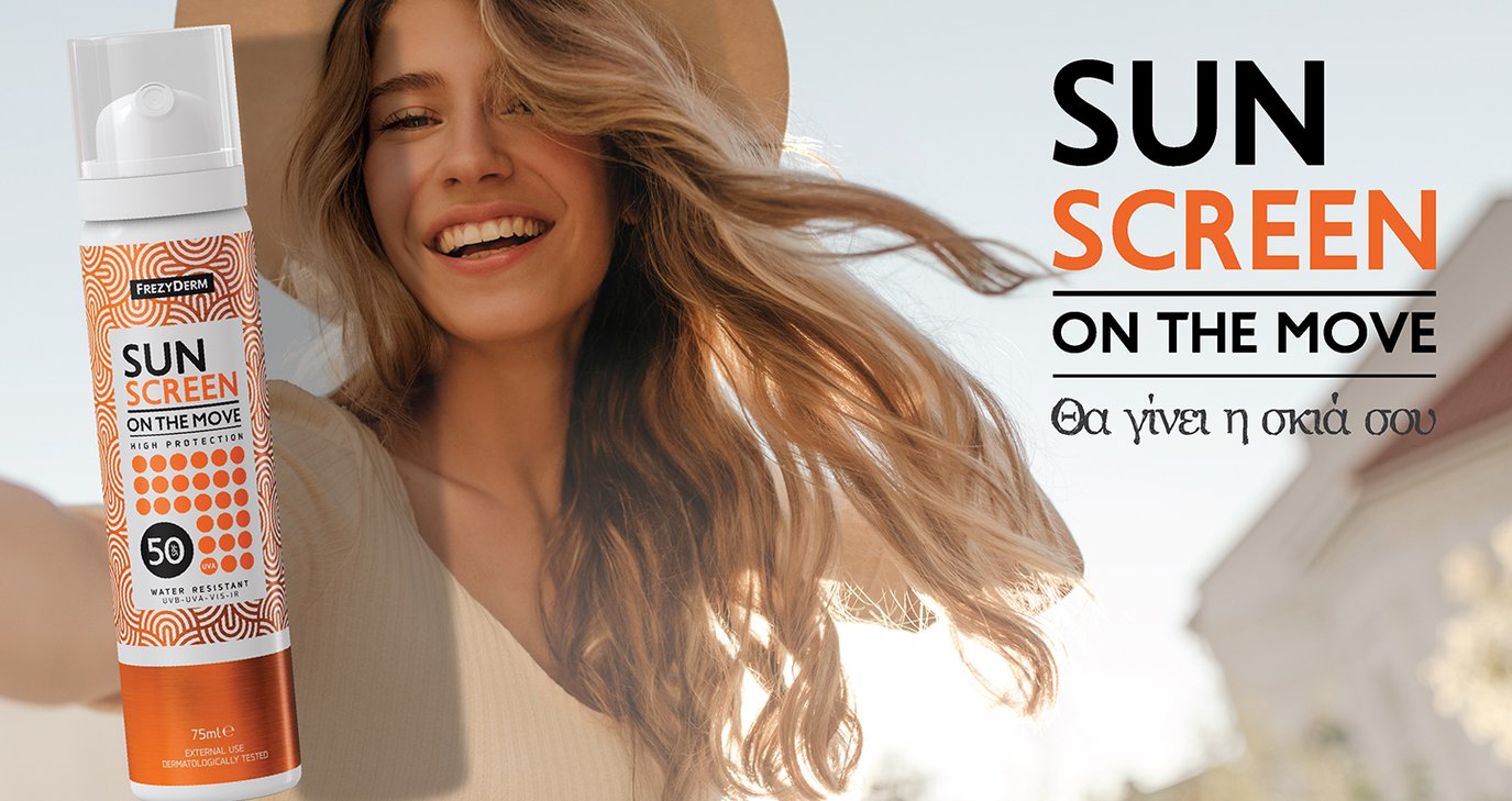 Μια δραστήρια καθημερινότητα χρειάζεται και την απαραίτητη προστασία, ιδιαίτερα τους ζεστούς μήνες του καλοκαιριού, γι’ αυτό η Frezyderm έρχεται να δώσει λύση με το αντηλιακό spray Frezyderm Sun Screen On the Μove το οποίο εφαρμόζεται πάνω από μακιγιάζ αλλά και στα μαλλιά.