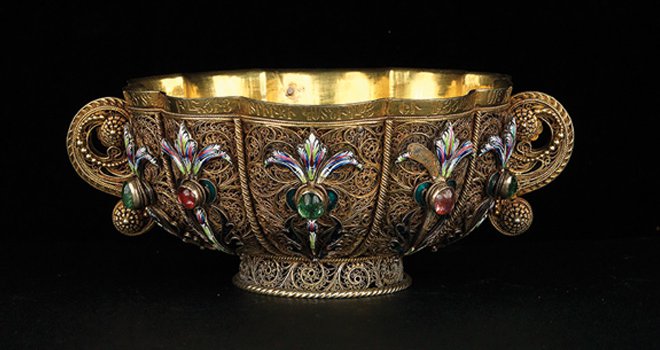 Η παρούσα έκθεση παρουσιάζει την αρμένικη τέχνη από τα τέλη του 16ου, μέχρι το 19ο αιώνα και συμπεριλαμβάνει αντικείμενα ιδιαίτερης ιστορικής και καλλιτεχνικής σημασίας της Συλλογής της Οικογένειας Καλφαγιάν, η οποία άρχισε να δημιουργείται την εποχή του Μεσοπολέμου από μέλη της ομώνυμης οικογένειας, τα οποία επιθυμούσαν να διασώσουν την ιστορία και τη μνήμη του αρμενικού πολιτισμού, και εξακολουθεί να εμπλουτίζεται ακόμα και σήμερα με την ίδια αγάπη και το ίδιο μεράκι από απόγονους που ζουν στη Θεσσαλονίκη και έχουν μια ενεργό παρουσία στην ελληνική και αρμενική κοινωνία της πόλης. Η έκθεση, λοιπόν, περιλαμβάνει διάφορα αντικείμενα πάσης φύσεως, από σπάνια εκκλησιαστικά και κοσμικά αντικείμενα, όπως χειρόγραφα, μέχρι υφάσματα, εξαιρετικά κεραμικά, πορσελάνινα διακοσμητικά από την Κίνα, και ποικιλία διαφόρων αντικειμένων. Πρόκειται για αντικείμενα που αποκαλύπτουν ποικίλες όψεις και πτυχές της αρμενικής ιστορίας που κατασκευάστηκαν είτε από Αρμένιους καλλιτέχνες και τεχνίτες είτε ανήκαν, όπως μαρτυρούν επιγραφές τους, σε Αρμένιους. Πολλά από τα εκθέματα αποτελούν παράλληλα δωρεές σε ναούς.