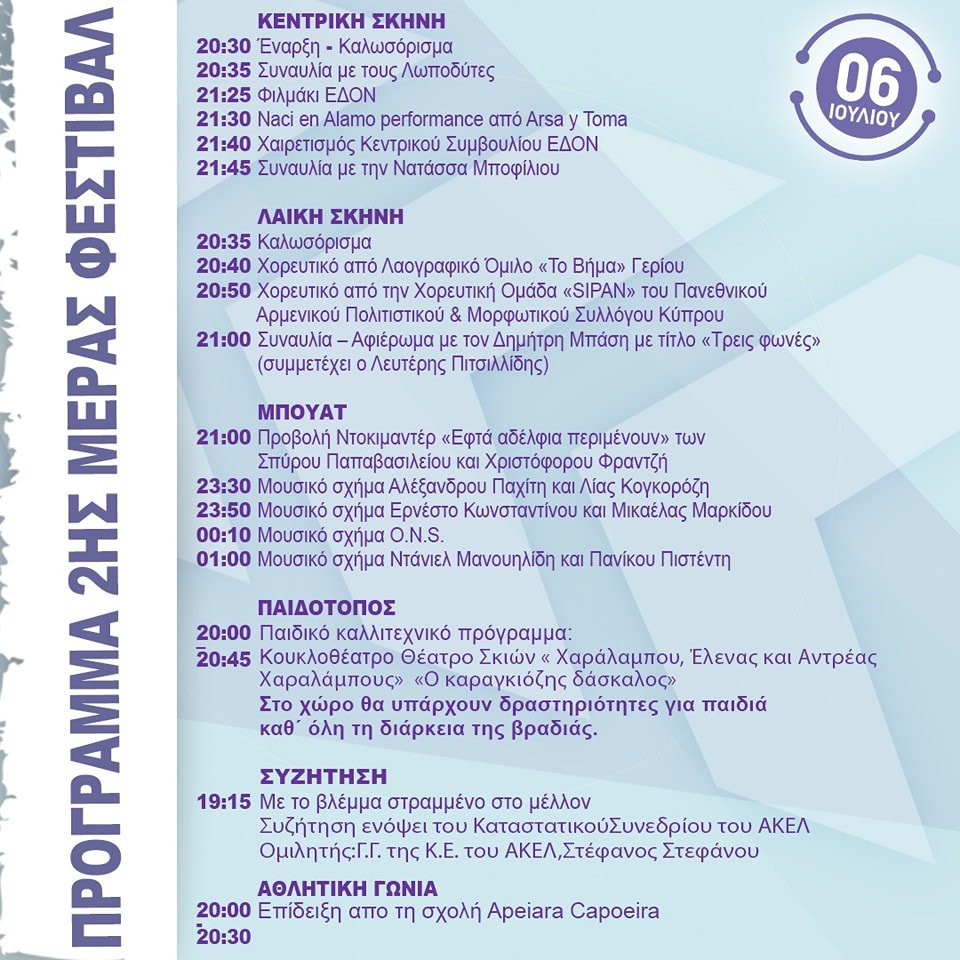 Συγκεκριμένα, το φεστιβάλ θα πραγματοποιηθεί το τριήμερο 5, 6 και 7 Ιουλίου, και πάλι στην τάφρο της Πύλης Αμμοχώστου, στη Λευκωσία.