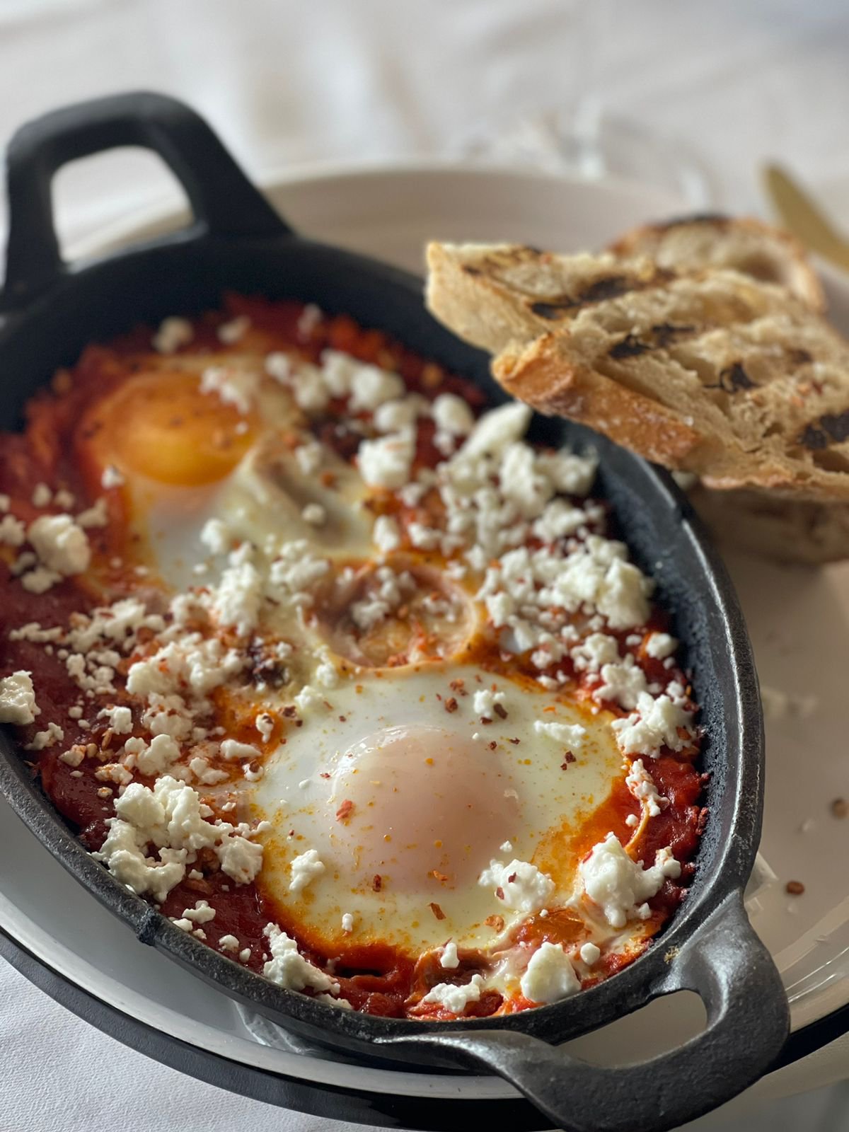 Ξεκίνα τη μέρα σου με τα αβγά Shakshouka που θα σε κάνουν να δεις το brunch αλλιώς. Τα αβγά Shakshouka ποσάρονται μέσα σε πικάντικη σάλτσα ντομάτας, αρωματισμένα με μπαχαρικά, ισπανικό λουκάνικο και ελληνική φέτα, ένα twist που θα λατρέψεις! Σερβίρονται ζεστά, δίπλα σε προζυμένιο φρεσκο ψωμί, και θα σου φτιάξουν τη μέρα!