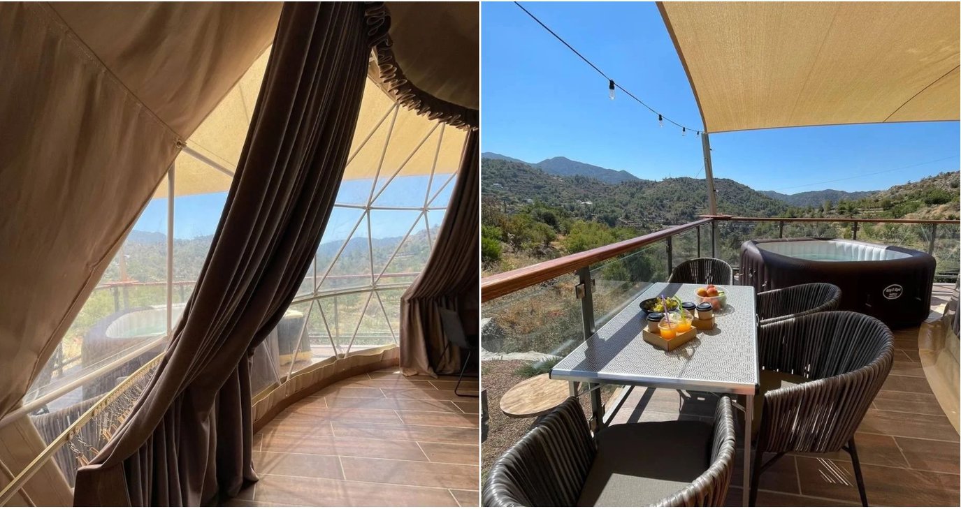 Το «Agros Glamping» λοιπόν, αποτελεί το νέο και αρκετά glamourous glamping του νησιού, που ήρθε για να σε κάνει να ζήσεις σαν νομάς, στο γραφικό χωριό Αγρός, της επ. Λεμεσού, σε απόσταση αναπνοής από τη φύση. Αν μπορείς να φανταστείς τον εαυτό σου να ξαπλώνει στο κρεβάτι και να παρακολουθεί τον ήλιο να δύει ή ακόμη καλύτερο, το φεγγάρι να ανατέλει και εσύ να βρίσκεσαι κάτω από τον έναστρο ουρανό με ένα πολύ καθαρό οπτικό πεδίο τότε... μάλλον αυτό το κατάλυμα σε ενδιαφέρει. Πρόκειται για έναν πολυτελή χώρο που στα παρέχει όλα. Το κατάλυμα περιλαμβάνει κουζίνα, ψυγείο, microwave, ντους, τραπεζαρία, τηλεόραση, και το καλύτερο; Αν είσαι πολύ glamper, μπορείς να χαλαρώσεις στο εξωτερικό jacuzzi του χώρου, με θέα την καταπράσινη ύπαιθρο. Αν θες να ζήσεις ονειρεμένες διακοπές, μέσα σε μια φούσκα-igloo, τότε αυτό το μέρος είναι για σένα!