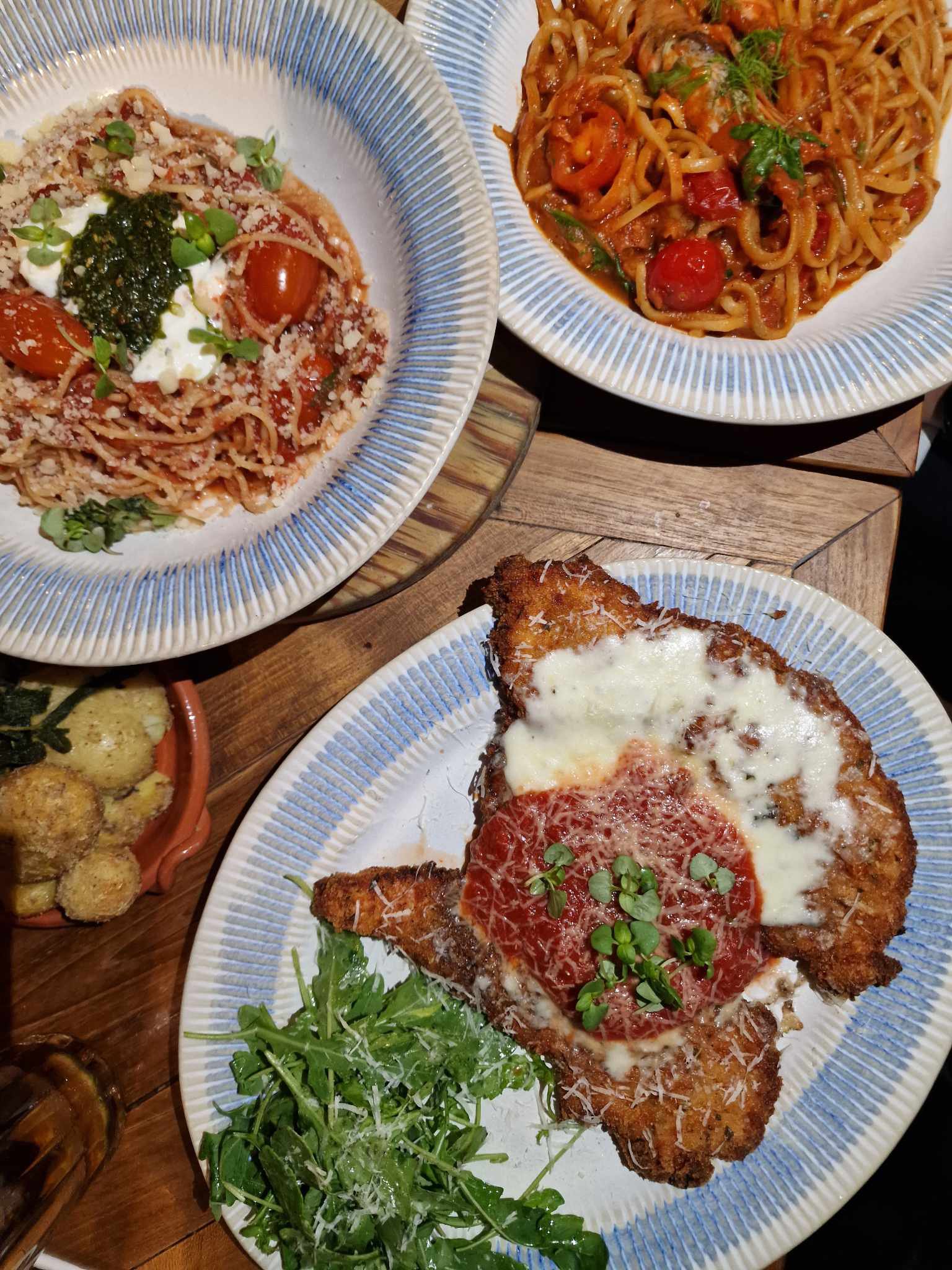 Για κυρίως, επιλέξαμε Chicken Parmigiana, ένα πιάτο που θα μπορούσε να είναι απλά μια ασφαλής επιλογή – αφού πρόκειται για παναρισμένο κοτόπουλο – αλλά κατάφερε να μας εκπλήξει ευχάριστα. Ζουμερό στήθος κοτόπουλο, σε πλούσια ποσότητα, με σος με ντομάτα και βασιλικό, μοτζαρέλα και παρμεζάνα, έρχονται με δική σου επιλογή στην πατάτα (τηγανιτή, πουρέ και baby potatoes).