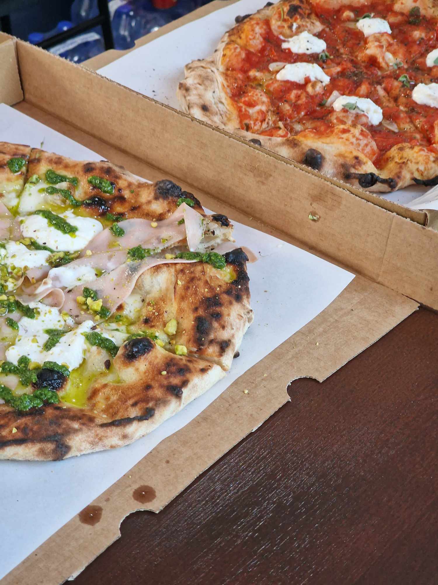 Καταλήξαμε στις Napoletana και Pesto Mortadella επειδή «πάμε να δοκιμάσουμε μία μόνο πίτσα» δεν είπε κανένας ποτέ. Η μία, η Napoletana, πιο κοντά στις κλασικές γεύσεις, με μαρινάρα και ρικότα. Η δεύτερη είναι μια πανδαισία γεύσεων που σίγουρα θα σε συνεπάρει αν ψάχνεις κάτι διαφορετικό. Pesto Mortadella και πέραν αυτών, περιλαμβάνει μπουράτα και φιστίκια. Χωρίς δεύτερη σκέψη, όποια κι αν παραγγείλεις αυτή σίγουρα πρέπει να είναι στα must-try σου. Έχεις, ωστόσο επιλογή και για Margherita και Spicy Salami, για να απολαύσεις με ροζέ ή λευκό κρασί, pilsner ή αναψυκτικό.
