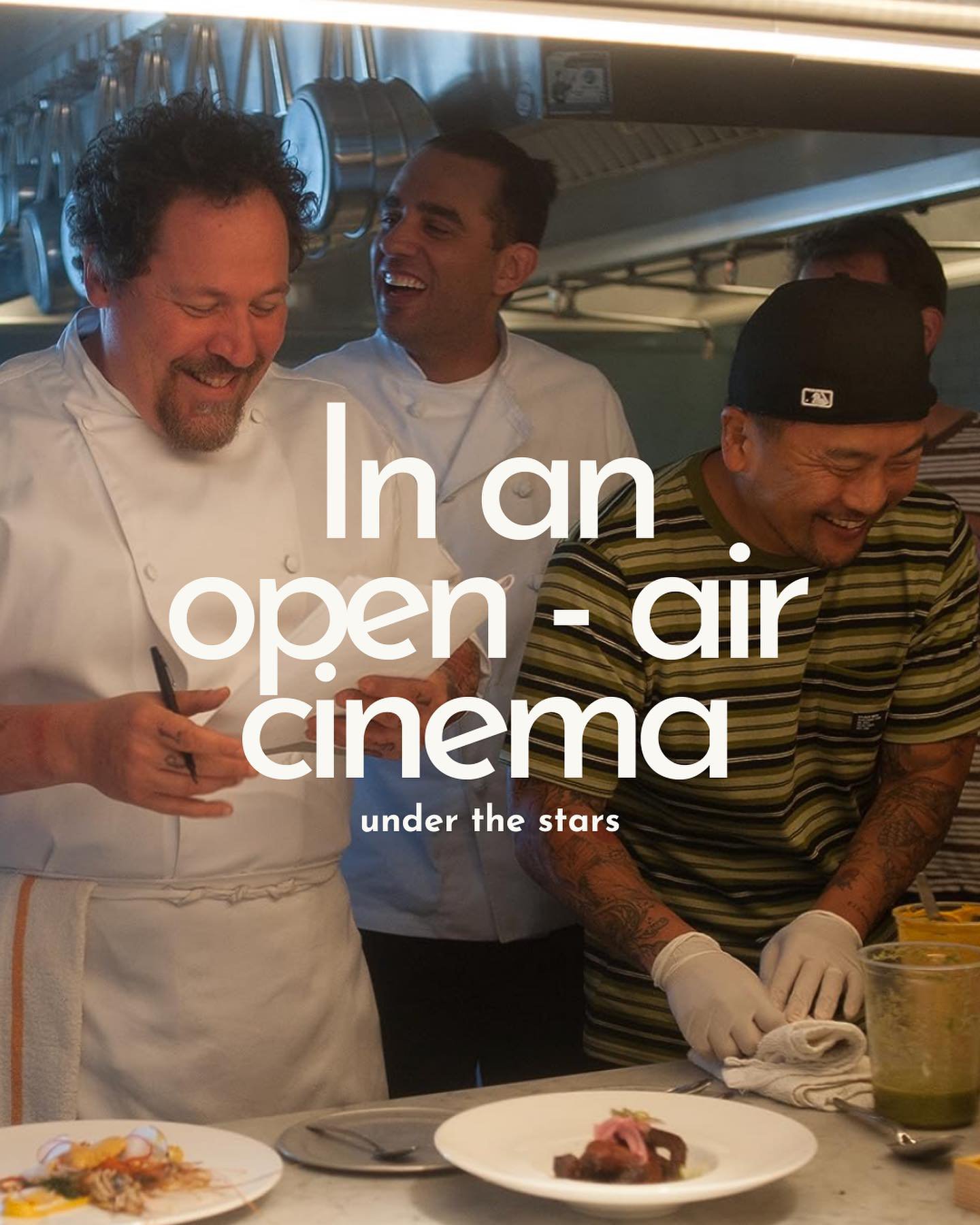 Εκεί θα παρακολουθήσουμε την ταινία του John Favreau «Chef» (2014) ενώ θα μας σερβίρουν ένα δείπνο με 5 πιάτα εμπνευσμένα από την ταινία, σε συνδυασμό με 4 ποτήρια κρασί.