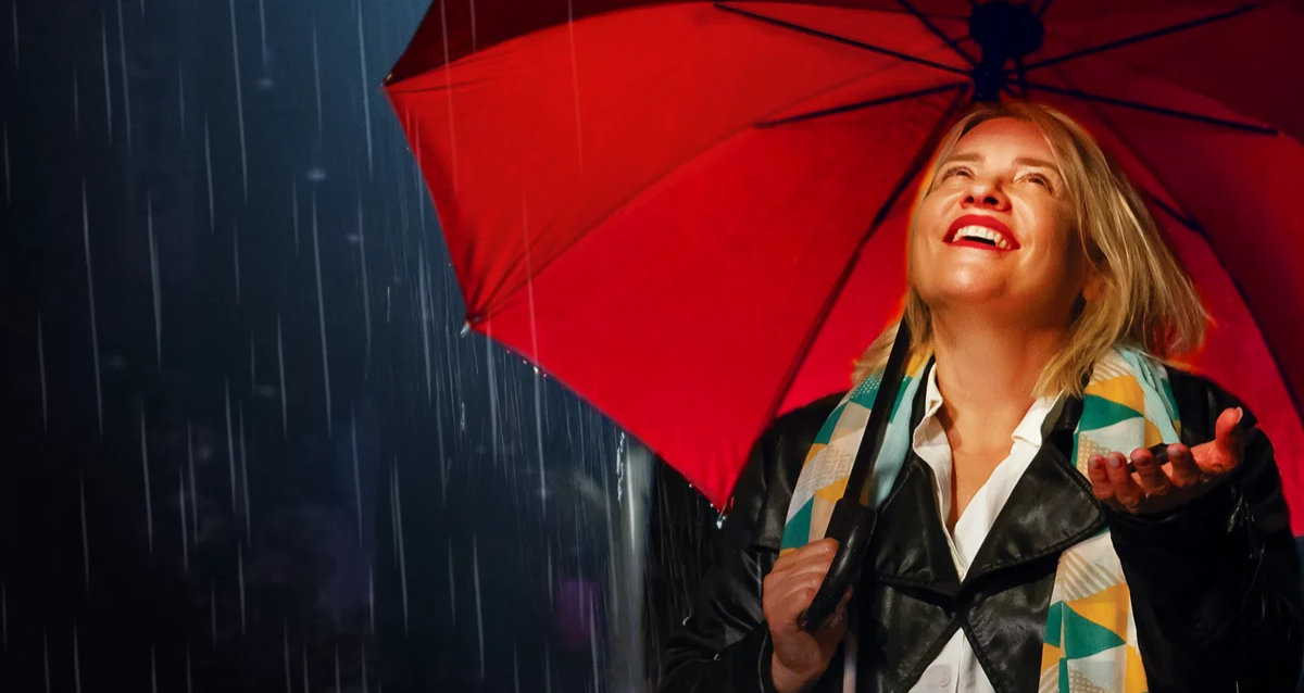 Ανυπεράσπιστη κι αυτή, μόνο μία ομπρέλα έχει να κρύβεται από κάτω της σαν σε καταφύγιο από την πραγματικότητα. Κι όταν η πραγματικότητα δεν της ταιριάζει η ομπρέλα της τη σώζει πάλι όπως τον ακροβάτη που σχοινοβατεί.