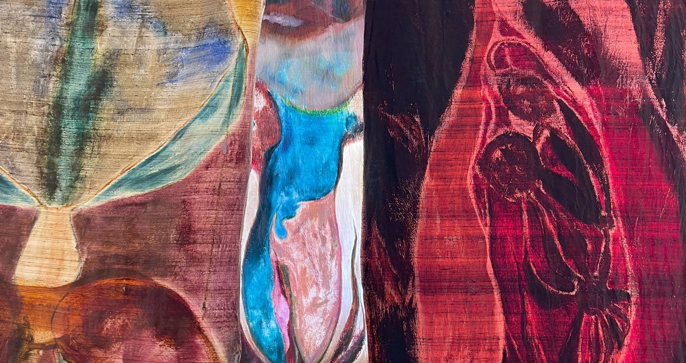 H καλλιτέχνις παρουσιάζει μια νέα σειρά έργων τα οποία ζωγράφισε σε αναξιοποίητο ακατέργαστο μετάξι, που συνέλεξε από υφασματοπωλεία, από ολόκληρη την Κύπρο.