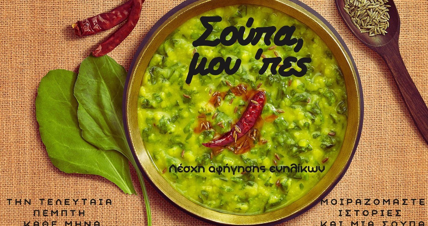 Η μουσικός και αφηγήτρια Ελενίτσα Γεωργίου μας προσκαλεί σε μια βραδιά αφηγήσεων και απολαύσεων των αισθήσεων. Με ένα θέμα κάθε μήνα και μία σούπα, σας προ(σ)καλώ να μοιραστούμε ιστορίες.