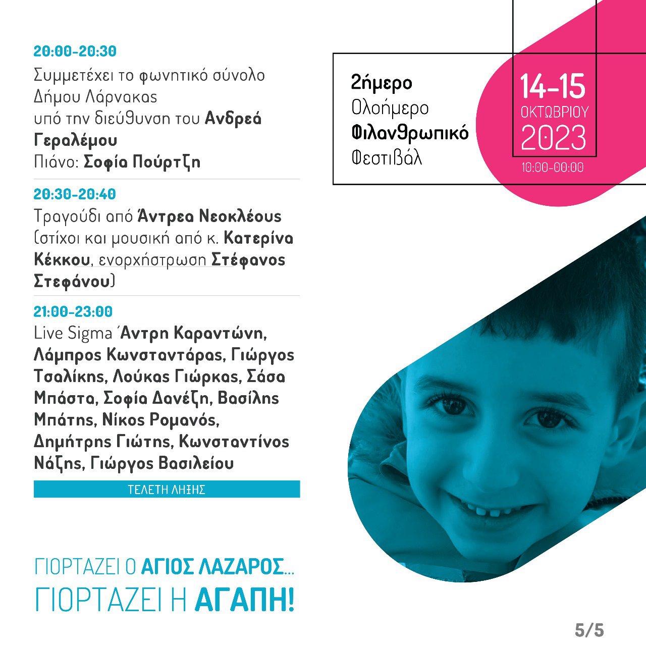Το περιβόλι του Αγίου Λαζάρου διοργανώνει για ακόμη μια χρονιά το διήμερο φιλανθρωπικό φεστιβάλ αγάπης «ο Άγιος Λάζαρος και ο Μικρός του Φίλος Σάββας» το οποίο τελεί υπό την αιγίδα και υψηλή προστασία του Μακαριότατου Αρχιεπισκόπου Κύπρου κ. κ. Γεωργίου, στις 14 και 15 Οκτωβρίου.